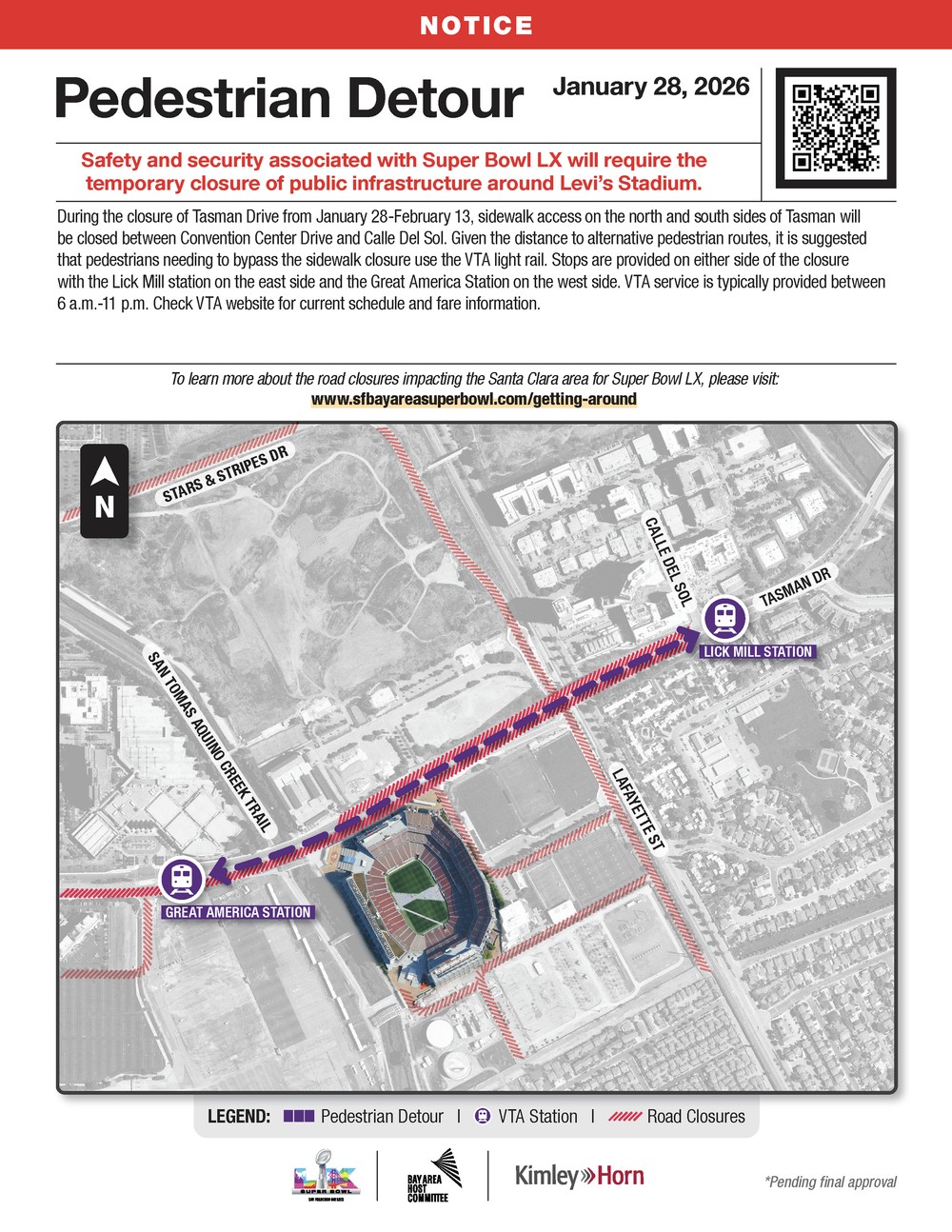 Some of the road closures are already in place, especially around Levi's Stadium, where the Super Bowl will be held on Feb. 8.